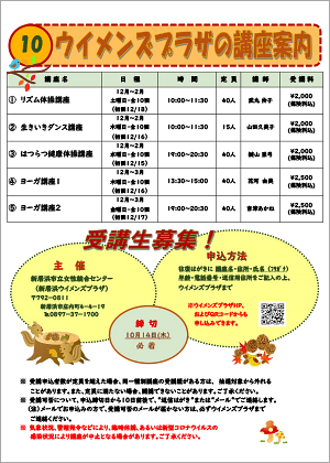 ※新型コロナウイルス感染症防止対策により、受講可否などのご連絡が遅れる又は講座が中止になる場合がございます。