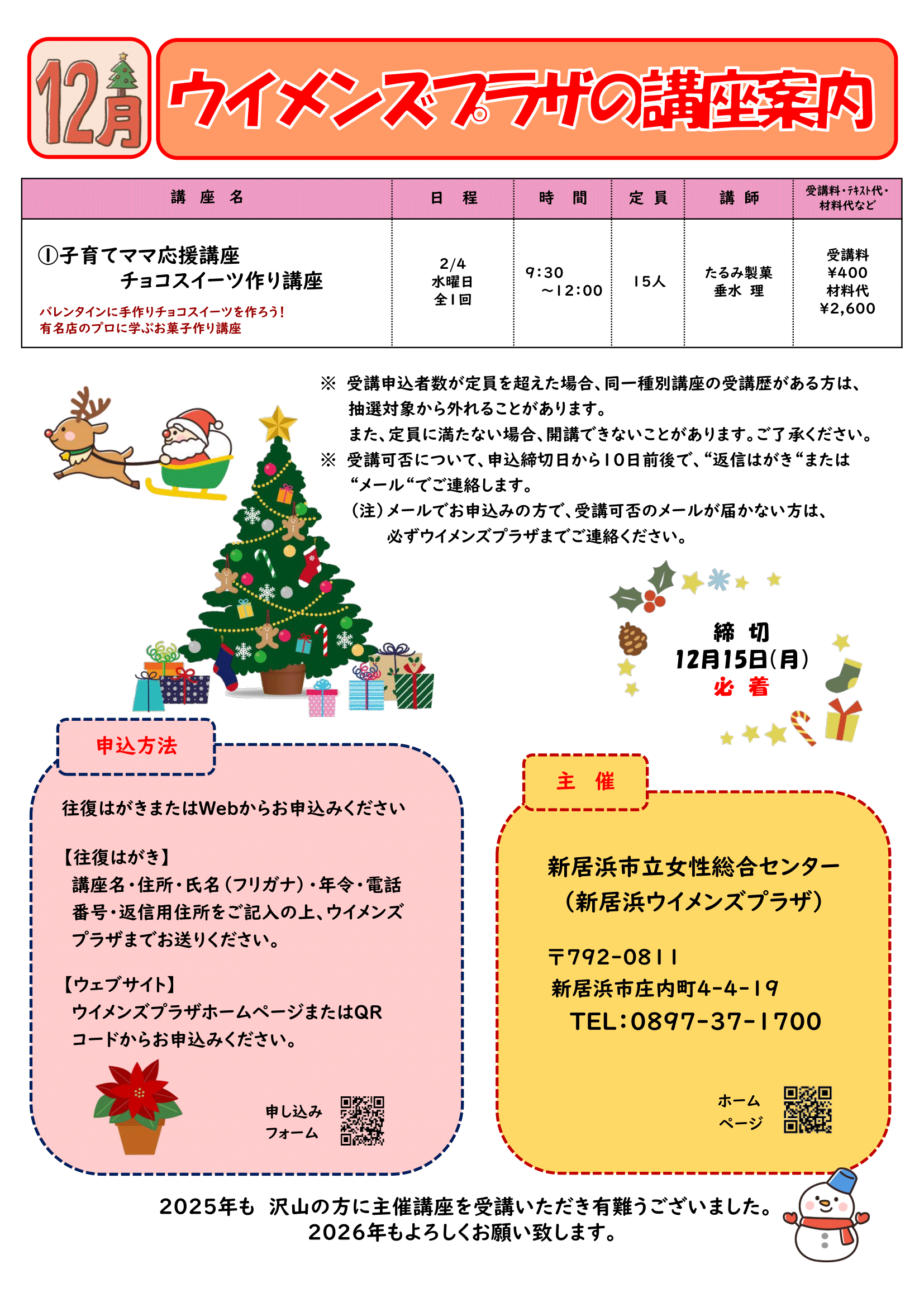 それに伴い、12月に受講生を募集する講座を皆様にお知らせします。