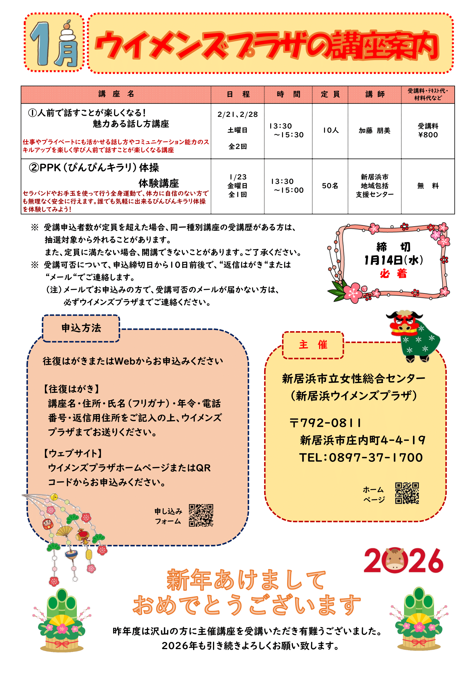 【1月の募集講座】(全2講座)