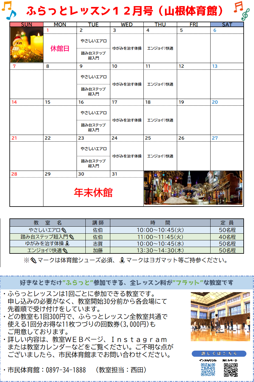 12月のふらっとレッスン案内(山根体育館)